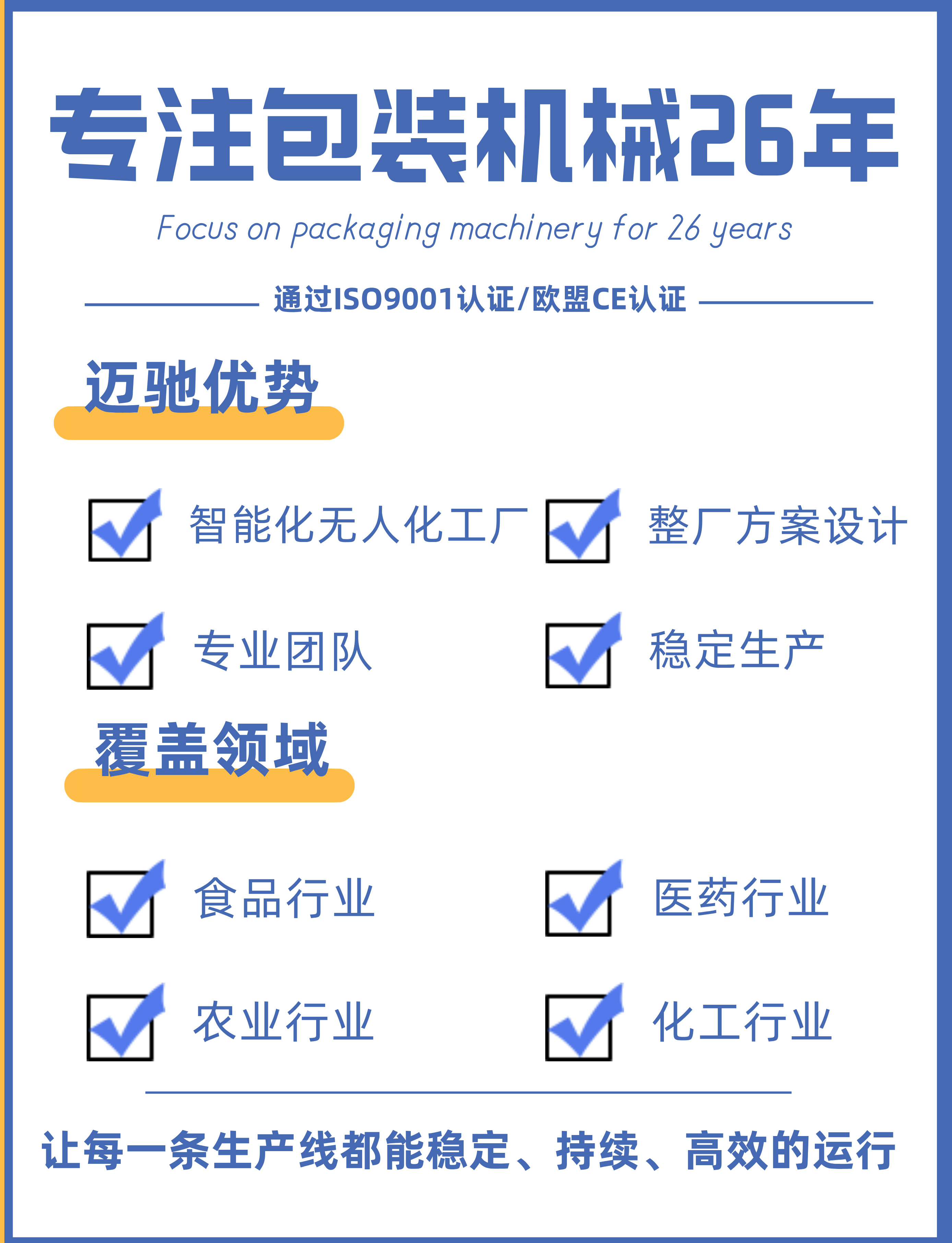 邁馳是一家專業生產全自動顆粒包裝機廠家,可根據客戶不同粉料特性定制一對一方案,可抽真空定型,高精度計量、無塵化包裝。26年包裝行業經驗,助力生產企業穩(wěn)定生產,提...